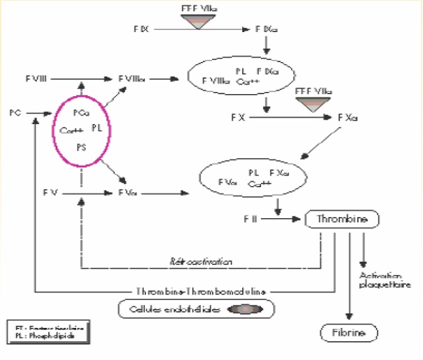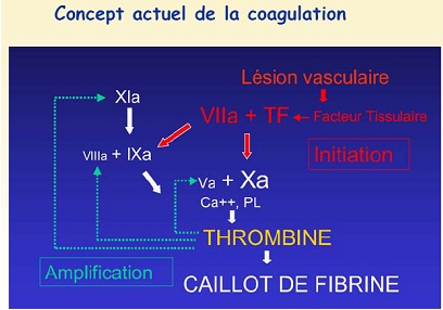 § La quantité de thrombine générée ne suffit pas pour produire la fibrine nécessaire à la constitution du caillot, mais permet le déclenchement de la phase de propagation de la coagulation.